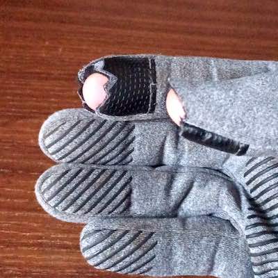 タッチに必要な最低限のカットに抑えたので、ニョキっと指だし手袋より遥かに露出が少なく快適。