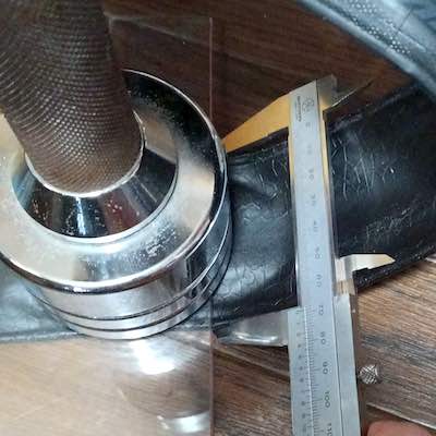 実測重量は 227.6g と、カタログ値 230g と近似。 かなり軽いやね。 タイヤを平らに潰した状態で幅を測る自称「
